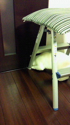 以前からある脚立の足にビニール紐を引っ掛けて…
