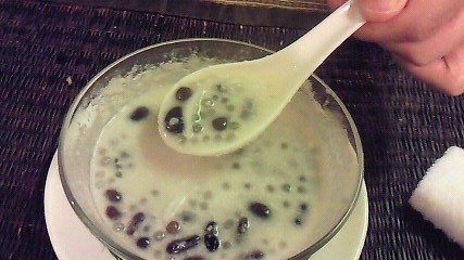 ココナッツミルクに小豆より少し大き目な豆入り(ホット)