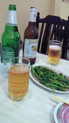 まずはビールと空心菜でゴクゴク…