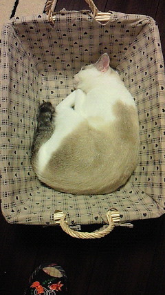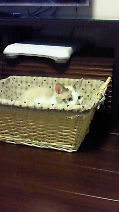 カゴに入ってもリラックス感があんまり感じられないのが残念。(TT)