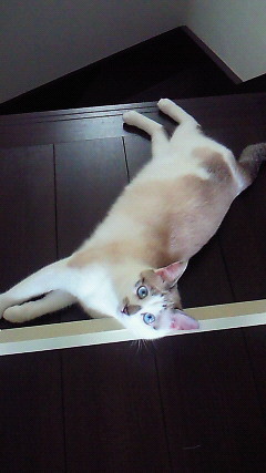 暑いと びよーん伸びてる猫だけど、前脚は上からは確認できない。