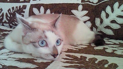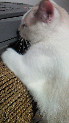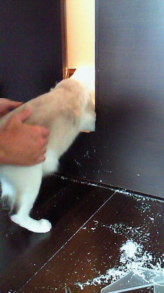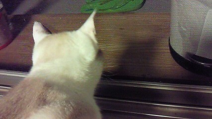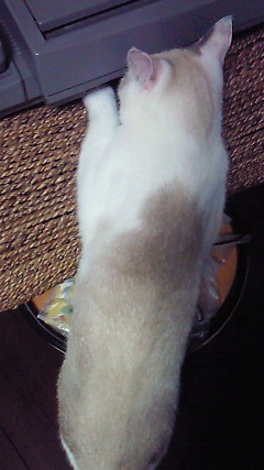 接着剤が渇くまでは 出入り禁止なので暇そうな猫。^^