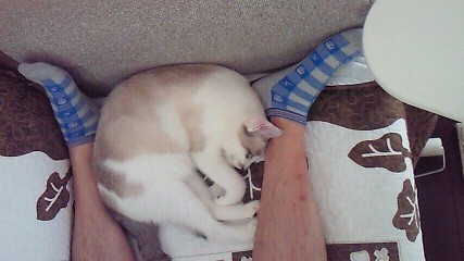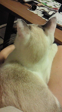 膝に許可も得ずに上がって来る。まだ暑いから迷惑なんだけど。(^^;