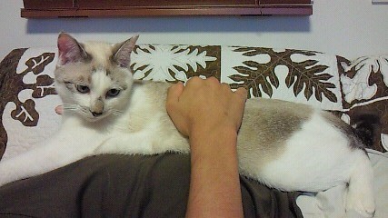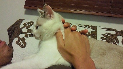 ダンナに捕まり、無理矢理胸に載せられて ガシッとホールドされた。