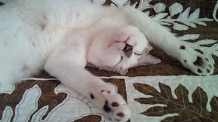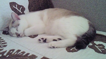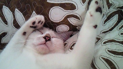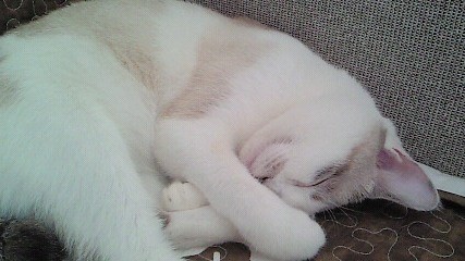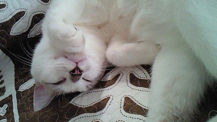 こうゆう体勢で寝てると全然デブ猫には見えないんだが‥