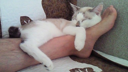 ソファーで寝ている足元にゴロゴロと纏わり付いている。