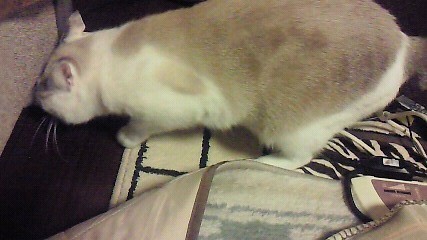 いつの間にか隣りに来て、左ヒジに頭突きをしてきた。