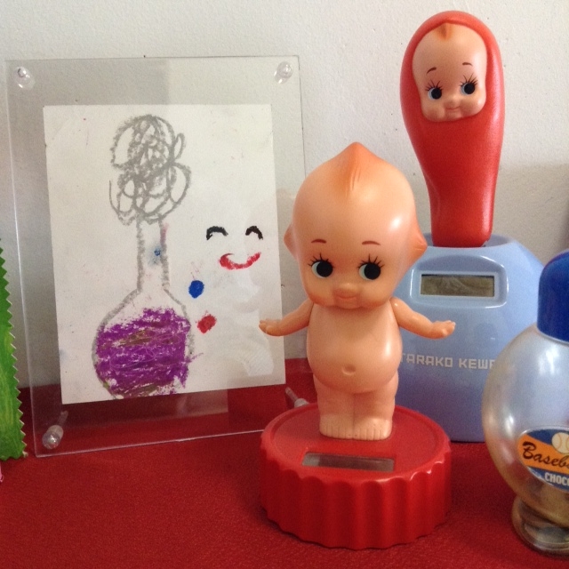 娘小2が図工で書いてきたのをくれたので、100円ショップでフレームを買って、寝部屋の玄関に飾った。