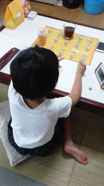 30年以上前に、俺が公文のプリントをこなしていた机で、今度は娘が公文のプリントをやっている。