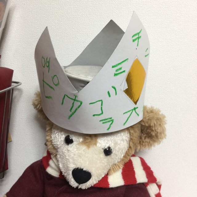 誕生月の子は、自分で絵を描いた王冠を被るんだけど、相変わらずのピタゴラスイッチ中毒。先生からもらえる色紙の表紙も、絵じゃなくてカタカナで「ピタゴラスイッチ」。