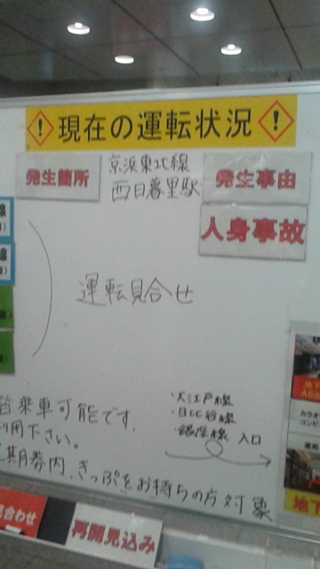 で、御徒町駅なう。たった今の人身事故発生。寄り道したおかげで、巻き添えを食わずに済んだと考えよう。