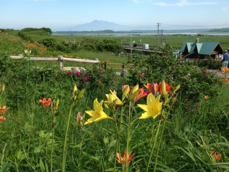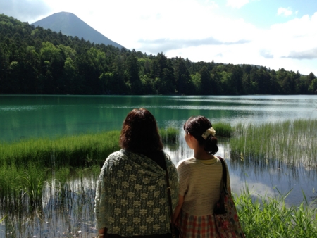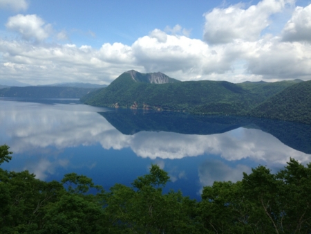 駐車場から遊歩道を少し歩くと、屈斜路湖の大パノラマが広がります。