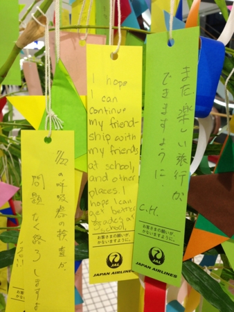 願い事を書いていたら、浴衣の地上係員が星食べよをくれました。