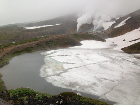姿見の池は半分以上雪におおわれて、自分の姿は見れませんでした。