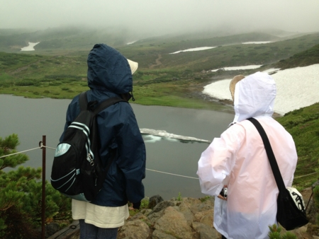 長女とその友達と小雨の中を旭岳ロープウェイに乗り、