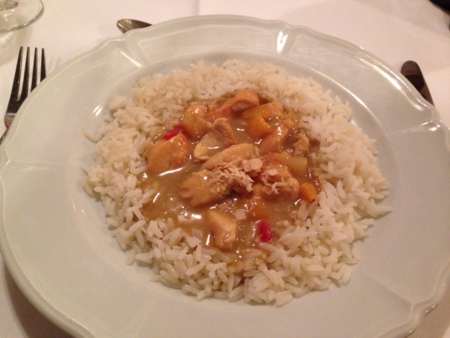 カレーと言えば、旅行中にスイスのホテルで食べた、チキンカレーもどきの写真をあげておきます。