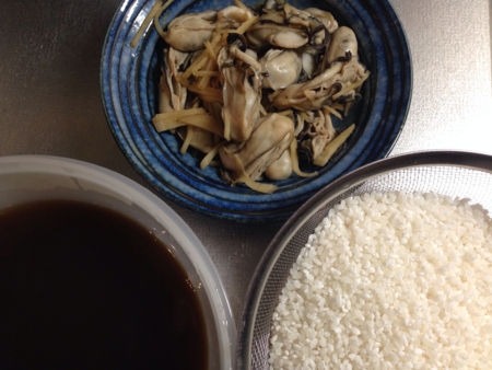 剥き牡蠣を頂いたので、牡蠣ご飯にしようと仕込みをしました。