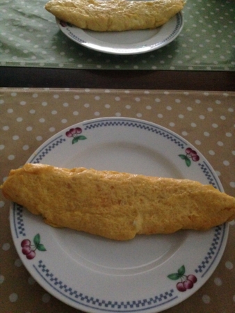 6個が割れてしまい動揺のあまり、オムレツもどきを急いで焼きました。