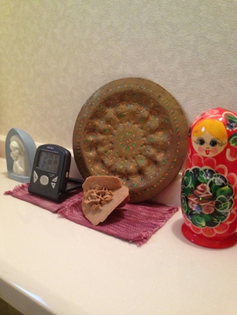 まめ夫さんのモロッコのお土産(15年前)のプレートと砂漠のバラを。