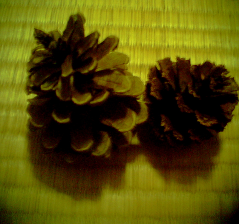ロッちゃんのかじり木はまつぼっくりです。