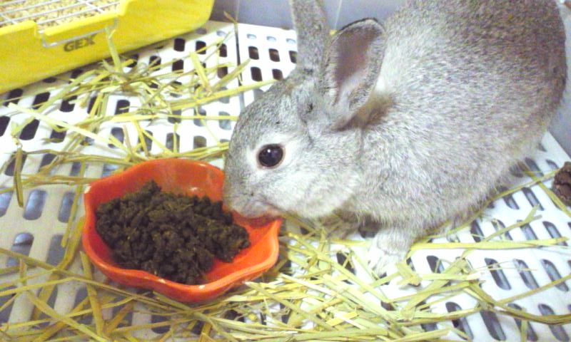 食欲のないロッタにアルファルファとペレットとすりりんごを混ぜてすり鉢ですったものを。