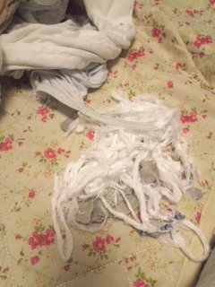 買ってきたばかりのコットンを一箱洗濯機に落として洗ったらしく、もう…悲惨です……