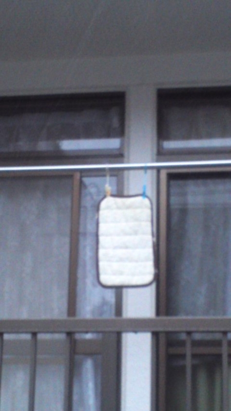 椅子に置いてある円座クッションを持ち上げてあの穴を覗いて遊んでいた。
