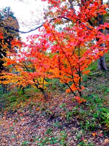 写真は昨日行ったフラワーセンターの山の中の紅葉。