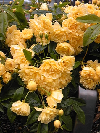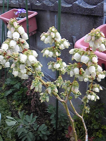 ピンクのミニバラと赤いシクラメンの鉢の背景に植えたカスミソウがやっと咲いたと思ったら、