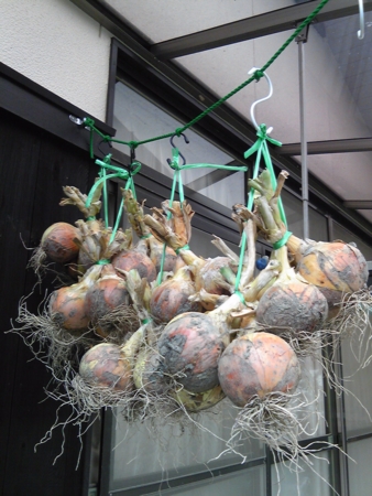 タマネギを縛って吊しました。