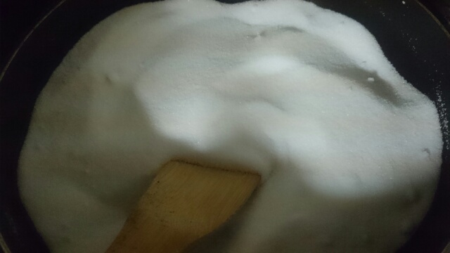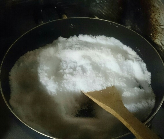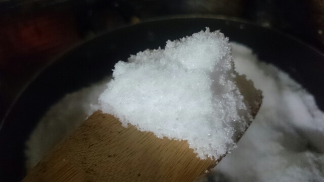 おかんが袋を作っている間に塩を空煎り。