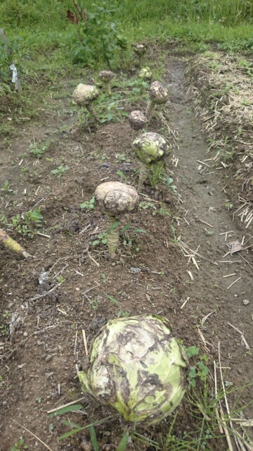 畑に不思議な物体があるなぁと近づいたらキャベツであった。
