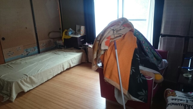 何も置いてなかったソファの後ろ、一番風が当たらない所にベッドを移動してみた。