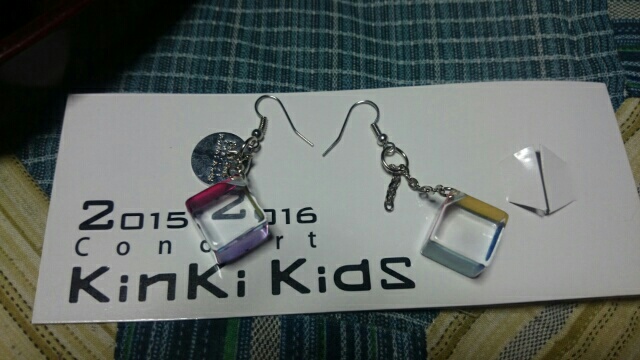 KinKiさんのグッズのキーホルダーをピアスにリメイク。