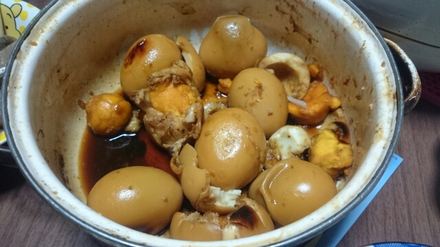 おかんが夕飯に作った煮たまごがことごとく爆発してた。