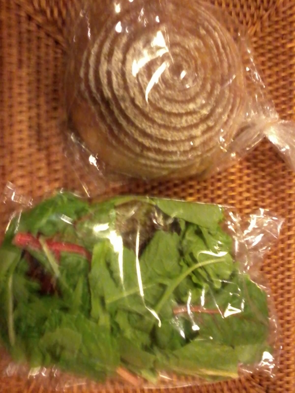 ダーシェンカのパンと朝摘みの有機野菜を持ってきてくれました。