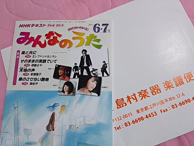 昨日仕事帰りに『みんなのうた』を買おうと本屋さんに寄って、「あったあった♪」とレジに持って行きかけたのが4月・5月号で。