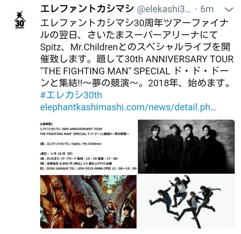 エレカシ・ミスチル・スピッツ夢の競演ですって!