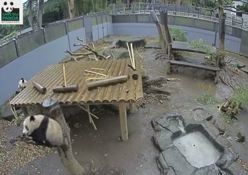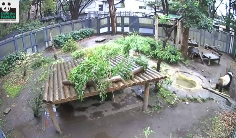 めっちゃ雨降ってるのにシャンシャンもお母さんも外にいる。