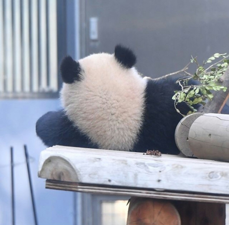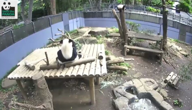 シャンシャン今日はいないなぁと思ったら木のてっぺんにいる。
