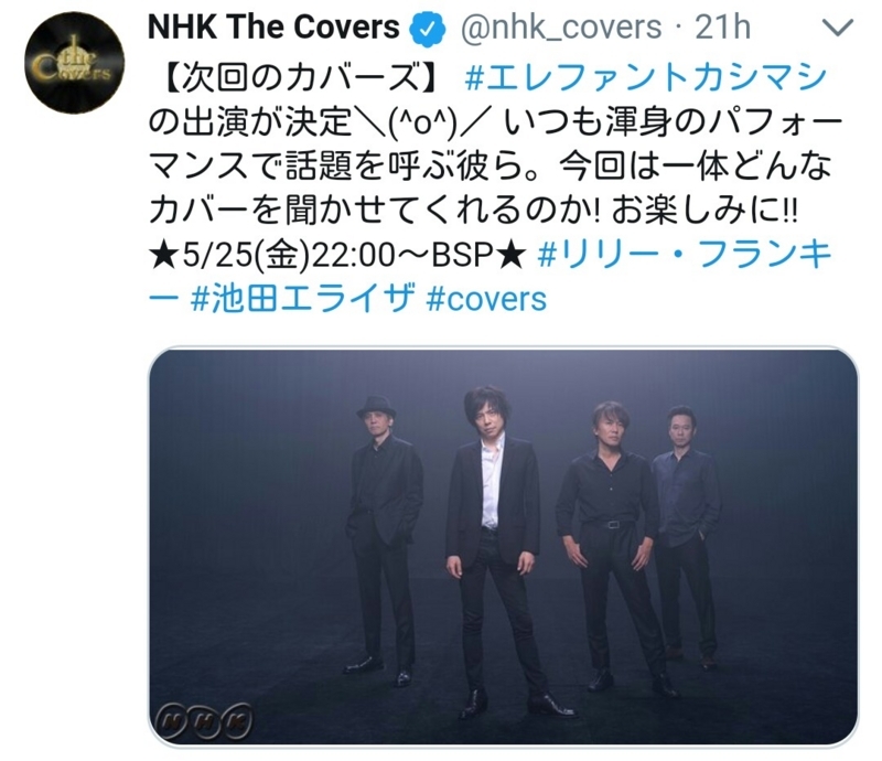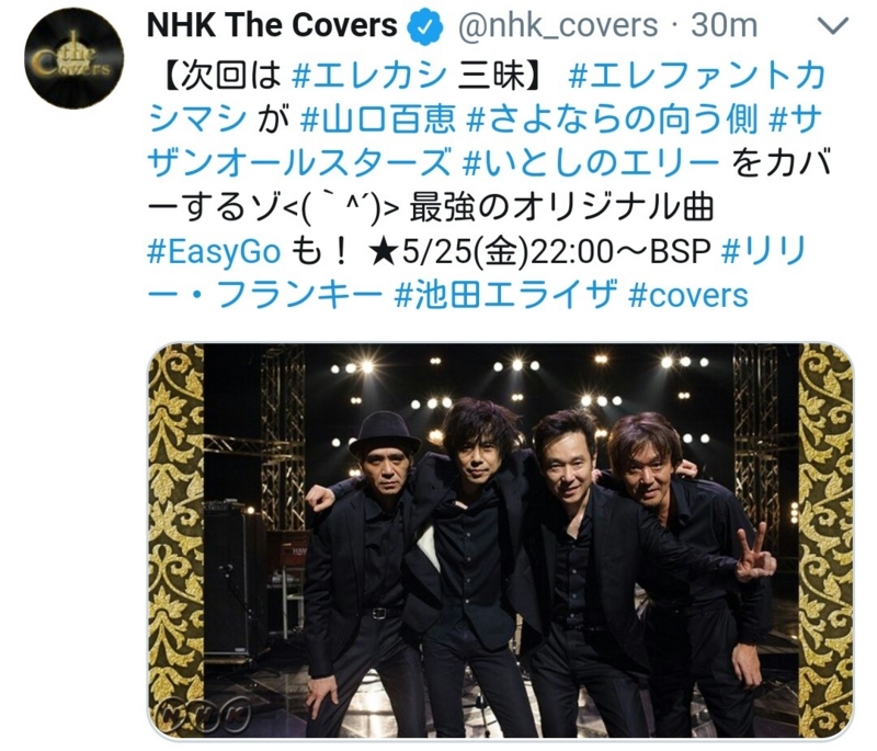 25日放送のCoversでエレカシがカバーするのが百恵ちゃんの『さよならの向う側』とサザンの『いとしのエリー』!