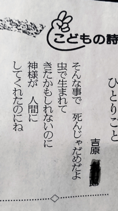 こんなことを書いた子供は、今頃どんなおとなになってるだろうか。