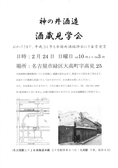 毎年恒例の酒蔵見学会を2月24日(日)AM10:00~PM3:00に開催します。