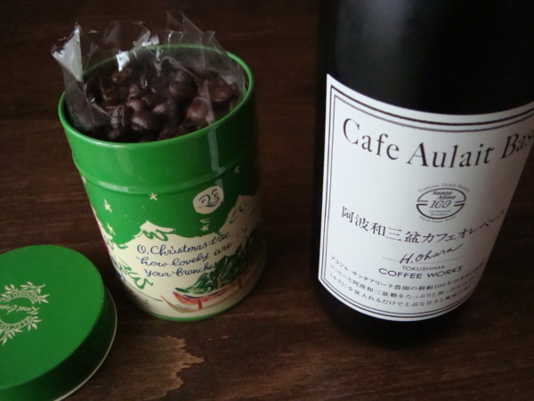 豆は、毎度毎度 100g だけ買います。半永久的に使うつもりの紅茶の空き缶にぴったりの量だからです。右は最近買ったカフェオレベース、和三盆入りというもの。すんごい甘かったらネスカフェを足して飲むつもり。