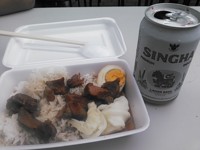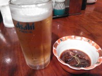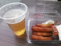 シンハビールとタイ風豚の串焼き&いかげそ焼き