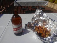 あさごはんにジャマイカビールのレッドストライプとジャークチキン