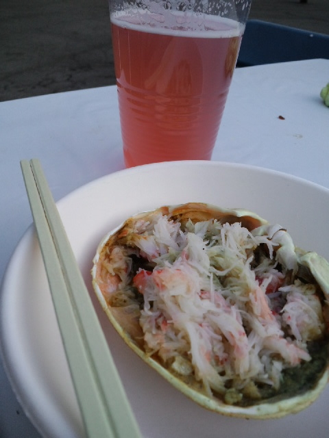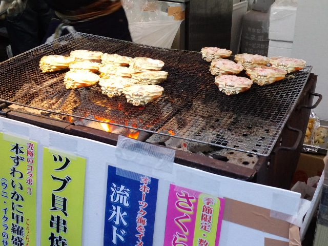 カニみそ甲羅焼きと牛タン串焼き2種、焼き牡蠣汁!