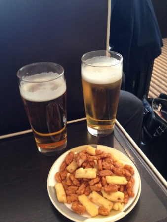 羽田空港でまめ夫さんと待ち合わせ、昼ビール部の活動中。