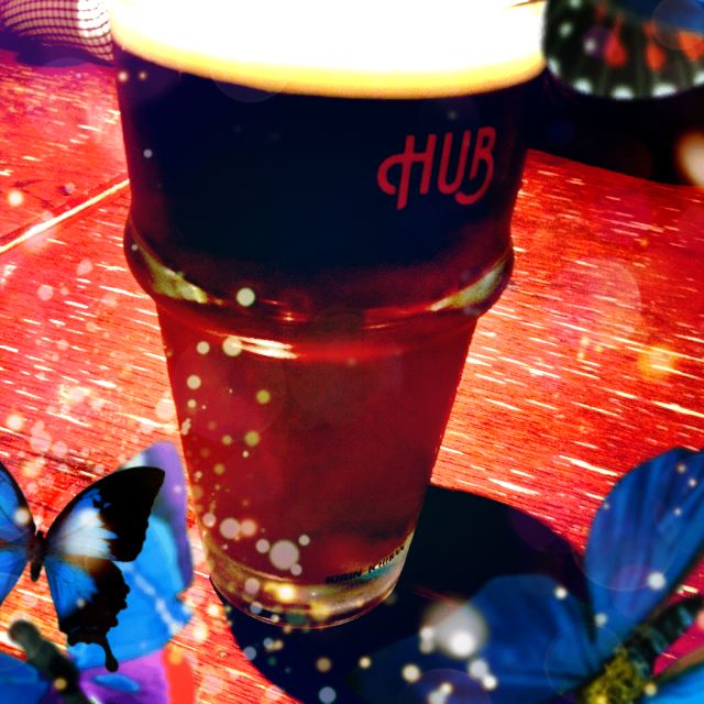 コハクエビスとギネスのハーフ&ハーフをパイントで。