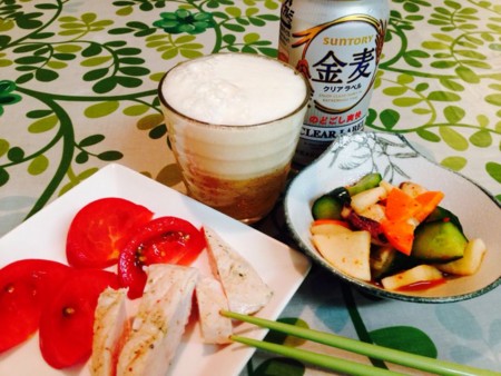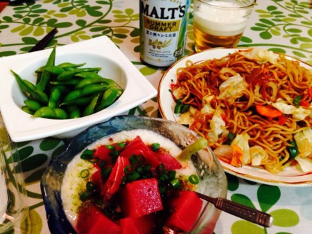 モルツのサマードラフトをマグロの山かけと呑むよ〜♪( ´θ`)ノ